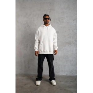 ERKEK DÜZ KAPÜŞONLU SWEAT - BEYAZ
