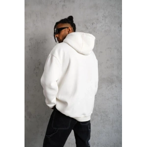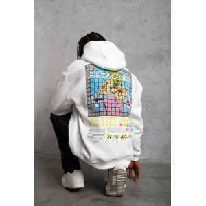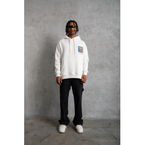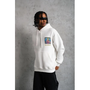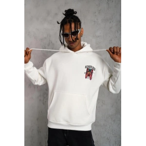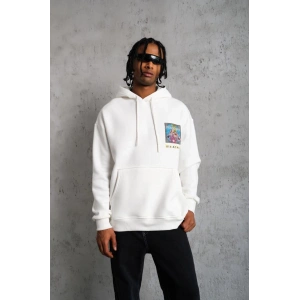 ERKEK BASKILI ÜÇ İPLİK KAPÜŞONLU OVERSİZE SWEATSHİRT - BEYAZ