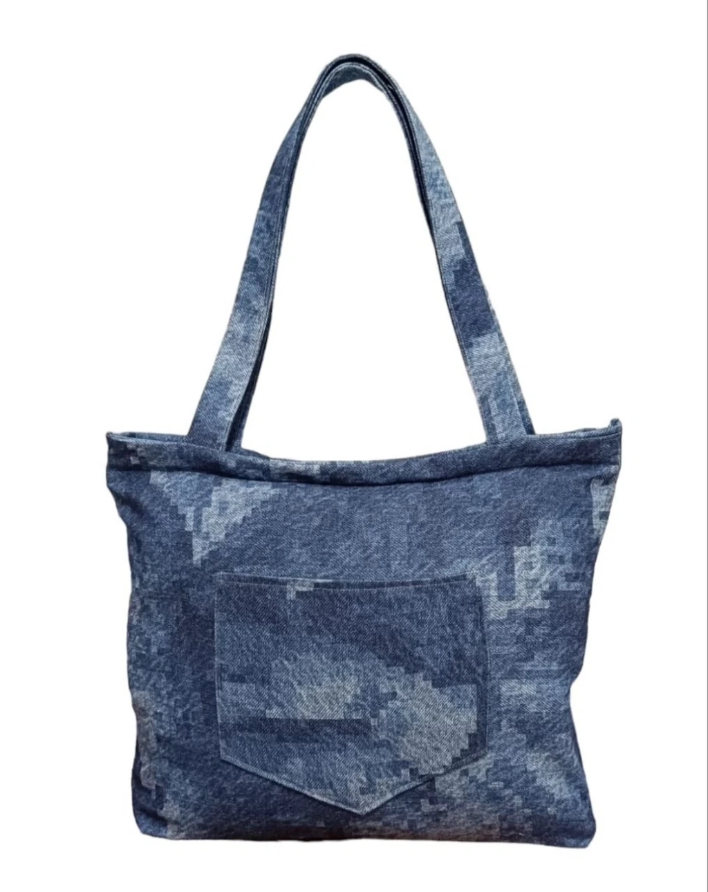 Blujin Desenli Piknik ve Deniz Cepli Fermuarlı Çanta - Mavi