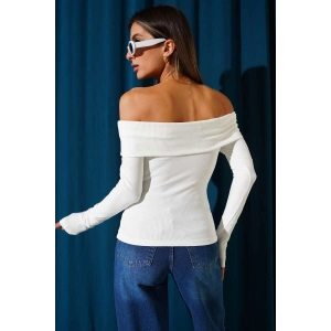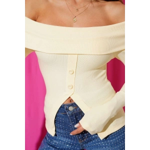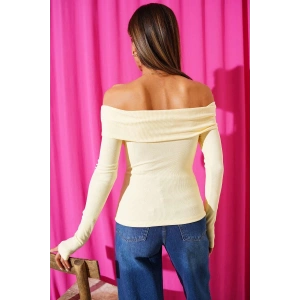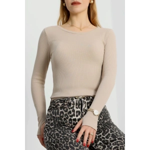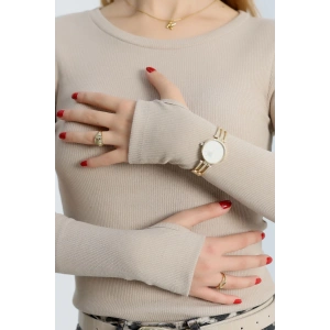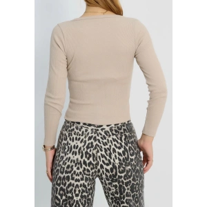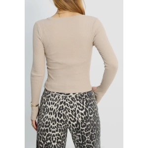 Bisiklet Yaka Parmak Geçmeli Kaşkorse bluz bej a3829