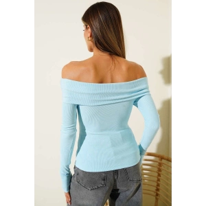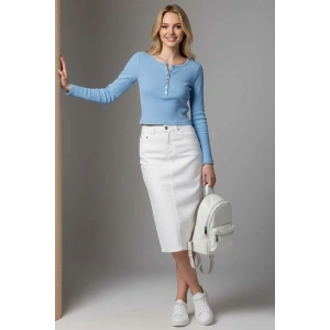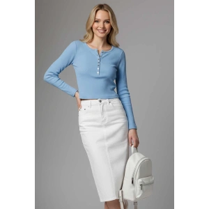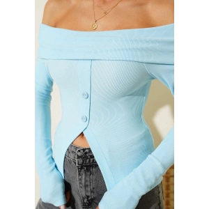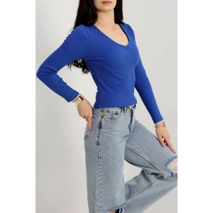 Madonna Yaka Düğmeli Bluz Mavi t4329