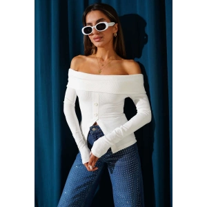 Madonna Yaka Düğmeli Bluz Beyaz t4329
