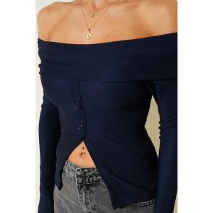 Madonna Yaka Düğmeli Bluz Lacivert t4329