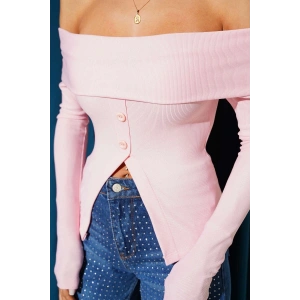 Madonna Yaka Düğmeli Bluz pembe t4329