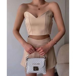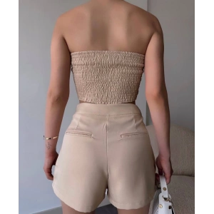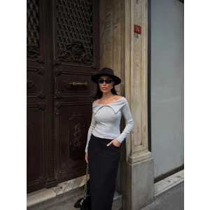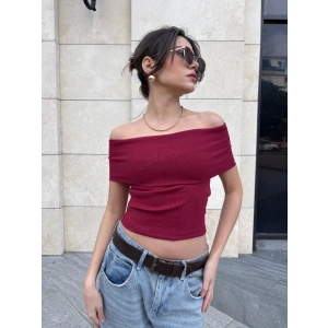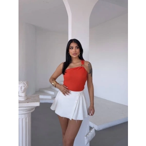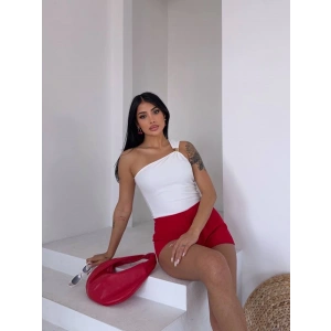 Tek omuzlu Otoman kumaş gold metal detaylı bluz s2311