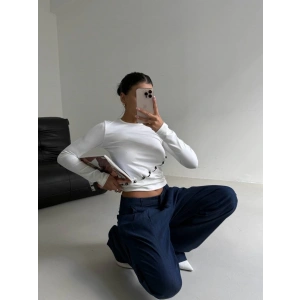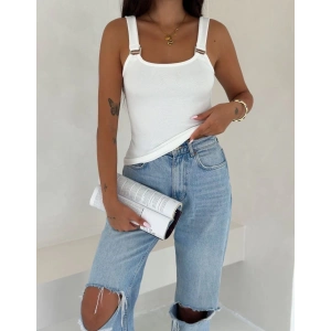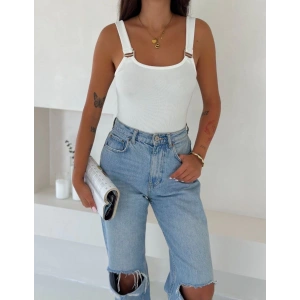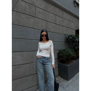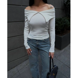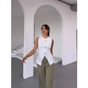 Kadın beyaz bisiklet yaka gold düğmeli ottoman bluz s2310
