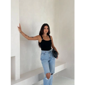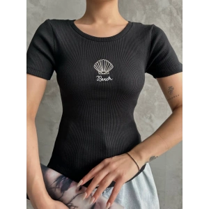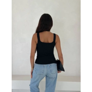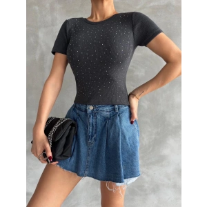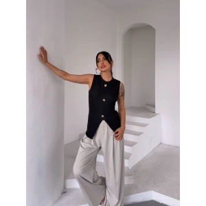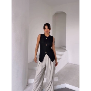 Kadın siyah bisiklet yaka gold düğmeli ottoman bluz s2310