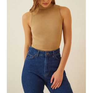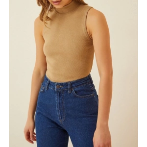 Kadın Full Likralı Fitilli Kaşkorse Body - Camel