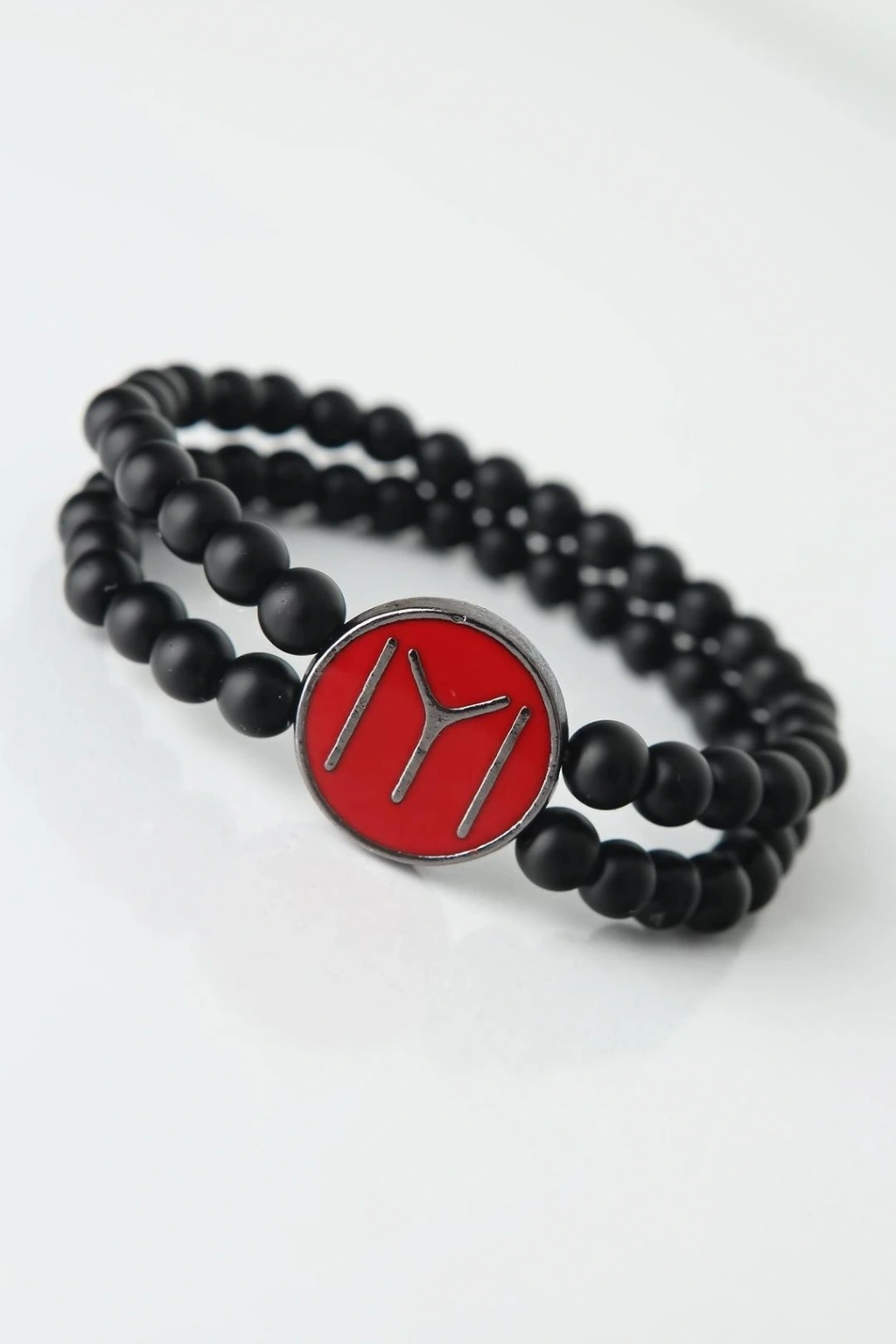 Sezonun en şık kombinlerinde mutlaka olması gereken Bordo Renkli Metal Üzerine Füme Kayı Boyu Figürlü Siyah Renk Çift Sıra Doğal Taş Erkek Bileklik modeli ile tarzınızı güncelleyin.