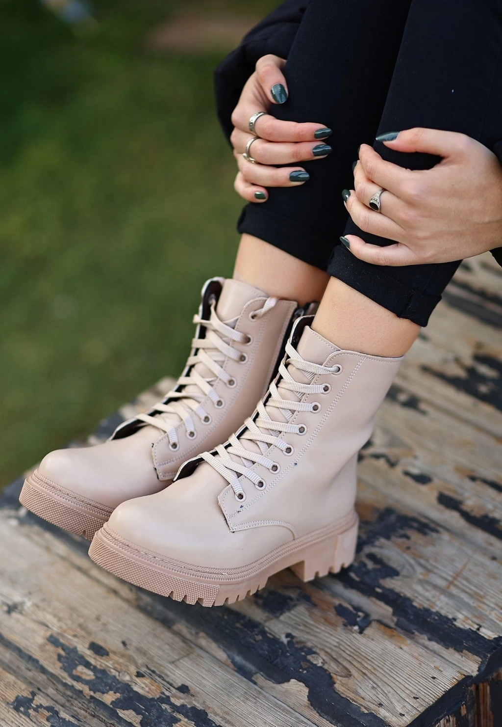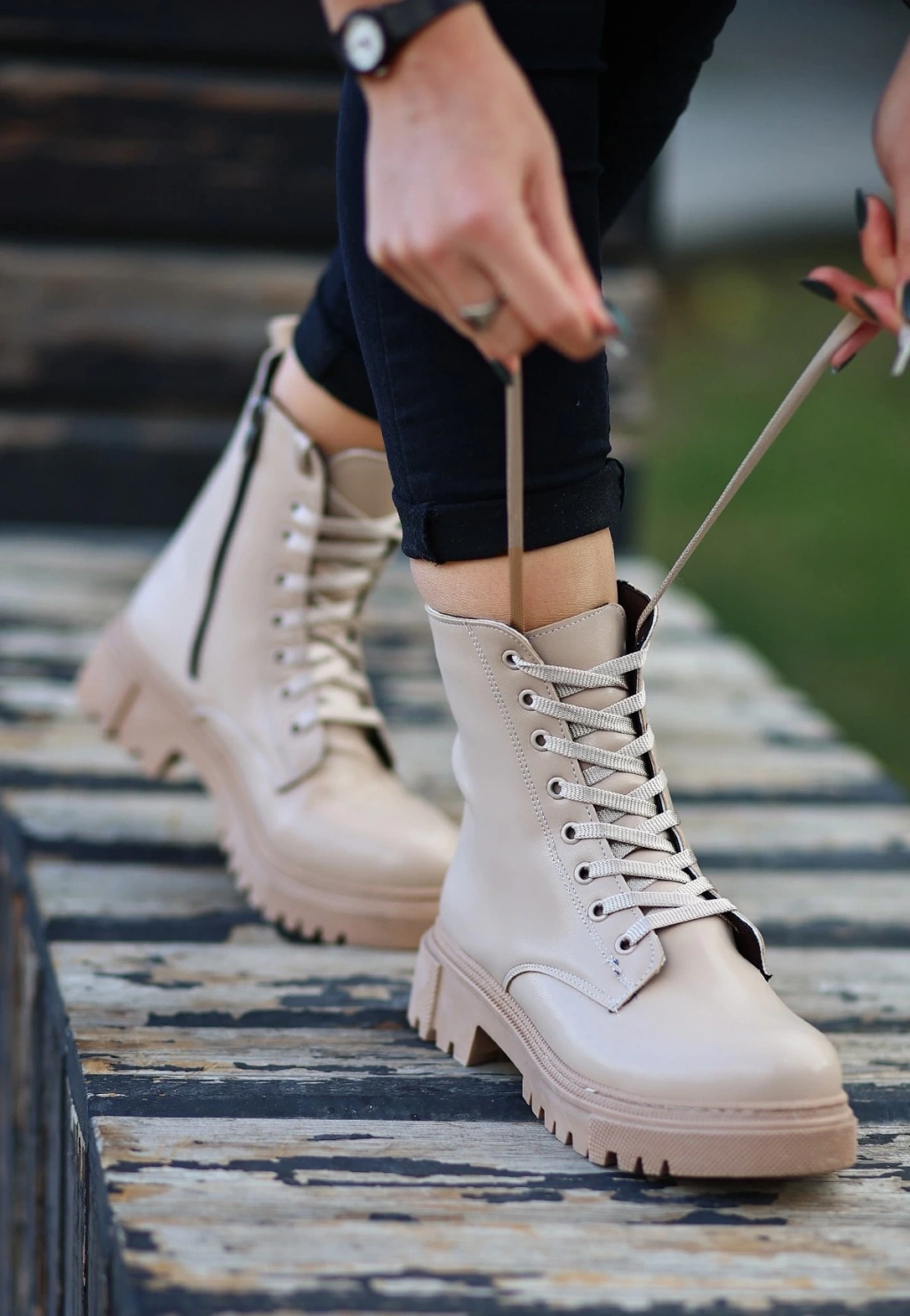 Jones Bej Cilt Bağcıklı Topuklu Bot