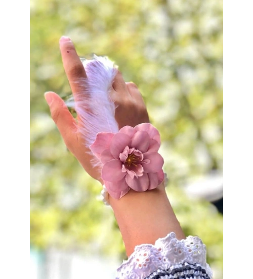 Bride to be Nedime Gelin Bilekliği Tüy ve İnci Boncuk Detaylı Pembe Renkli Bekarlığa Veda Partisi Bilekliği 10 Adet