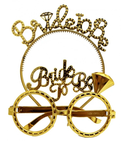 Bride To Be Yazılı Taç ve Bride To Be Yazılı Gözlük Seti Altın Renk NessiWorld