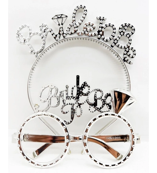 Bride To Be Yazılı Taç ve Bride To Be Yazılı GözlüK Seti Gümüş Renk NessiWorld