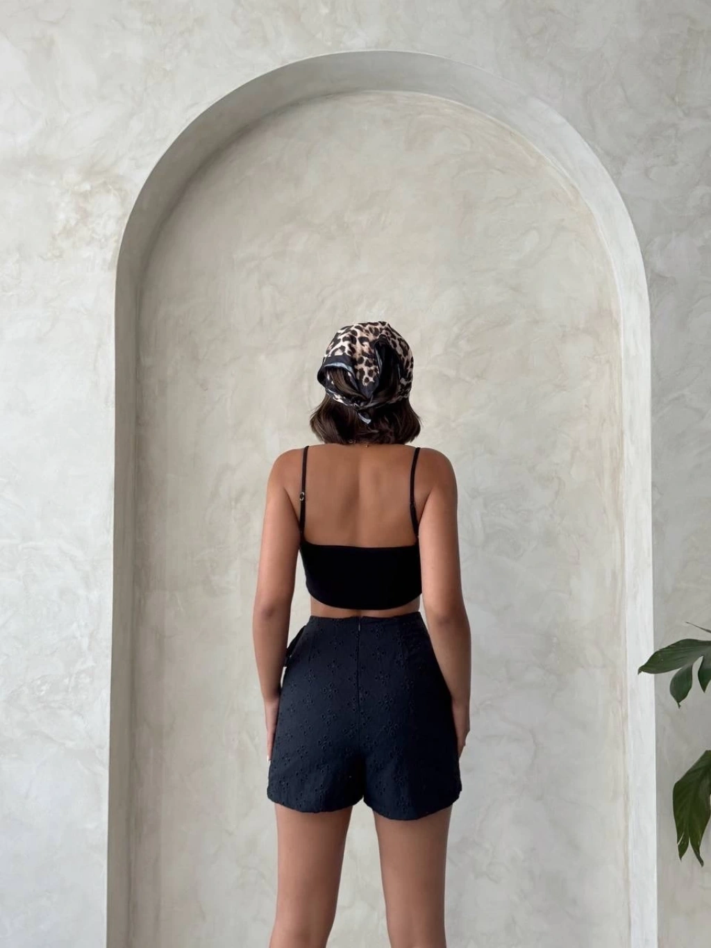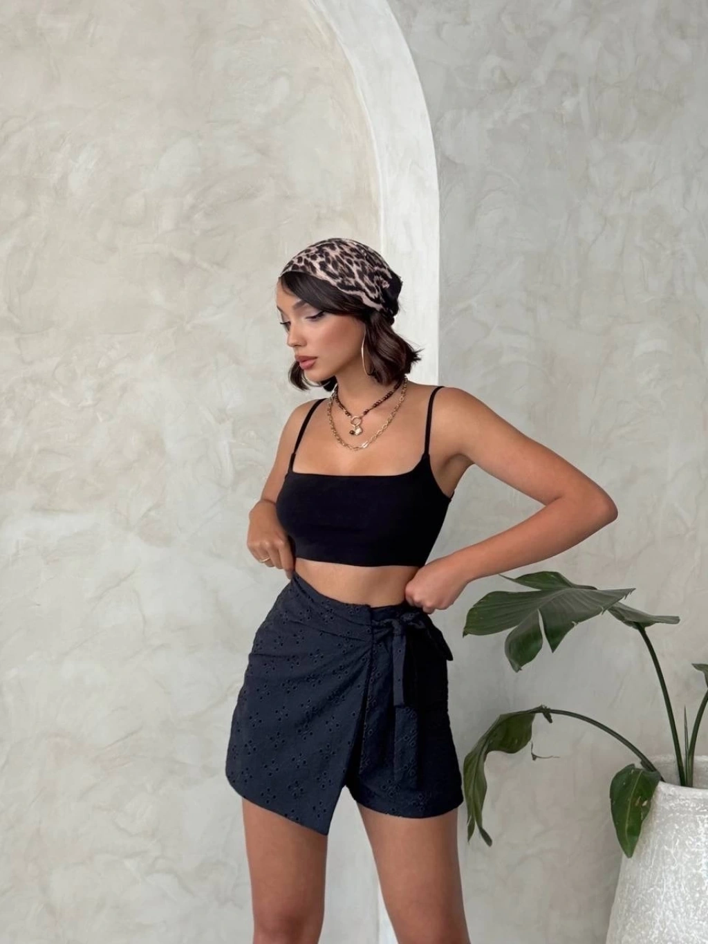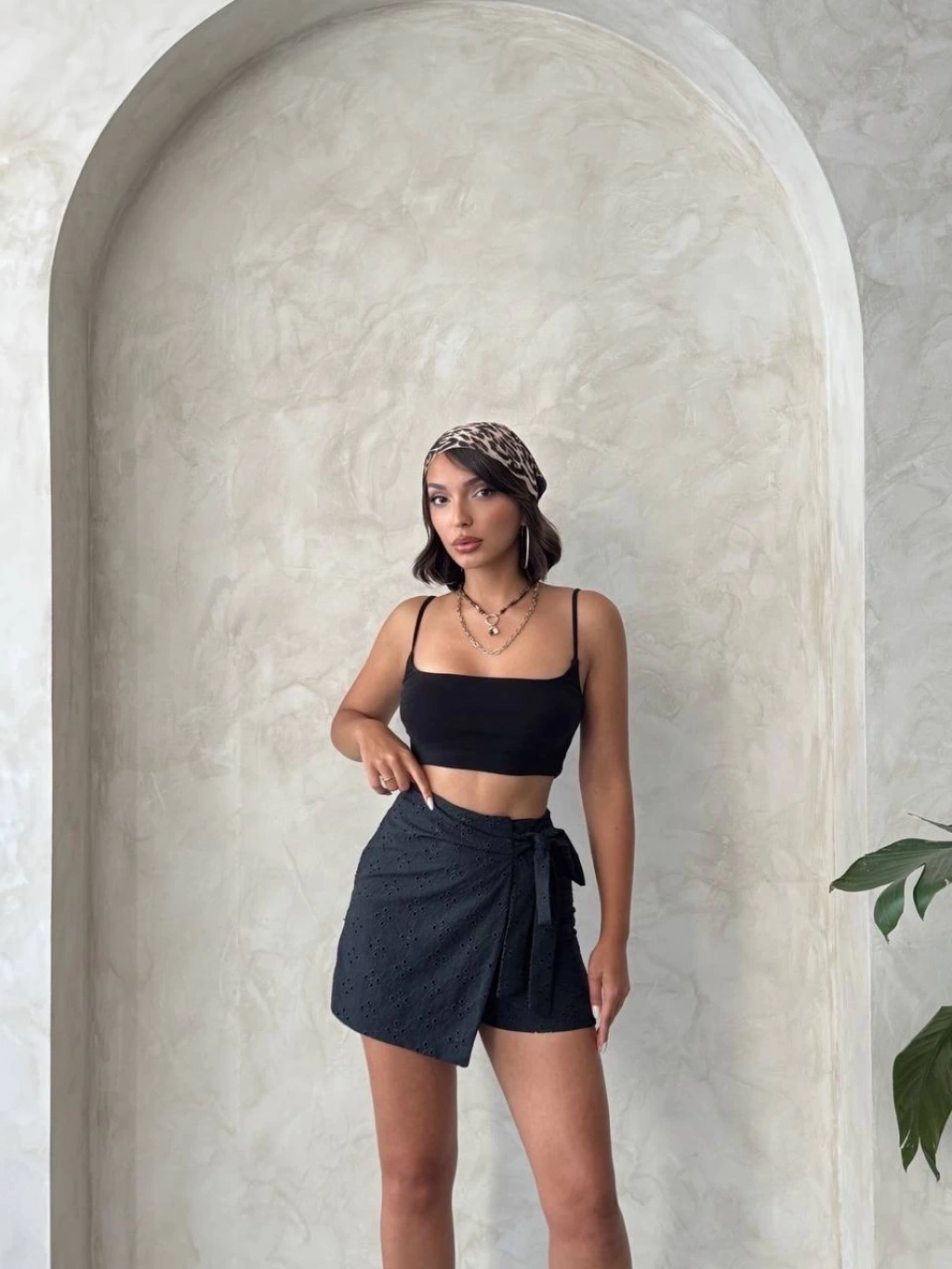 Kapaklı kaşe şort etek siyah beyaz kazayağı h261218