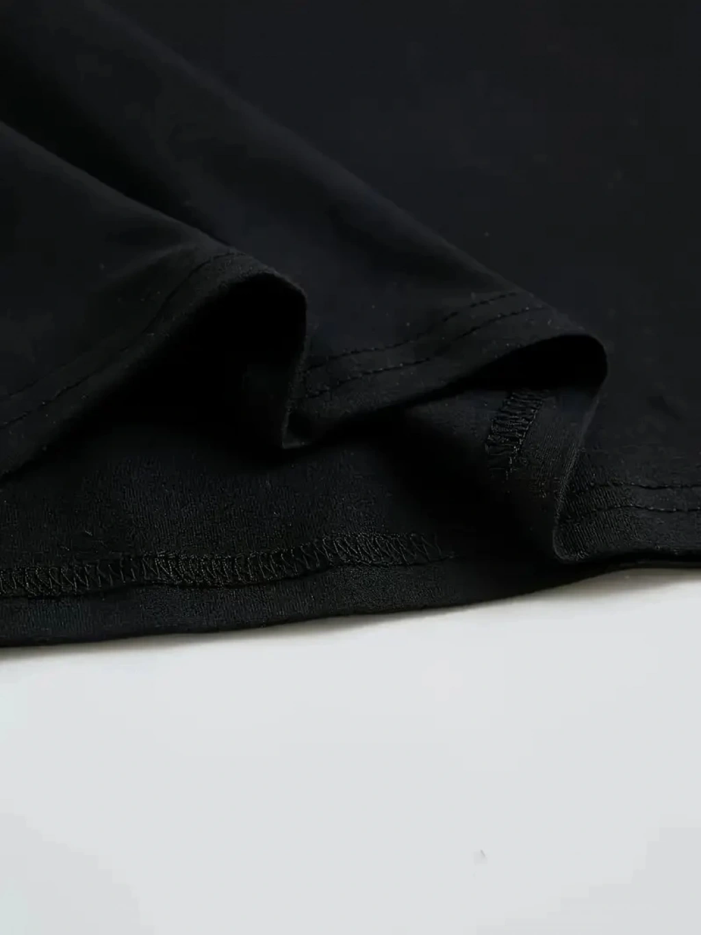 Rahat Bisiklet Yaka Tişört, Yaratıcı Karikatür Baskı - Yumuşak Polyester, Her Mevsim Giyilebilir- Siyah