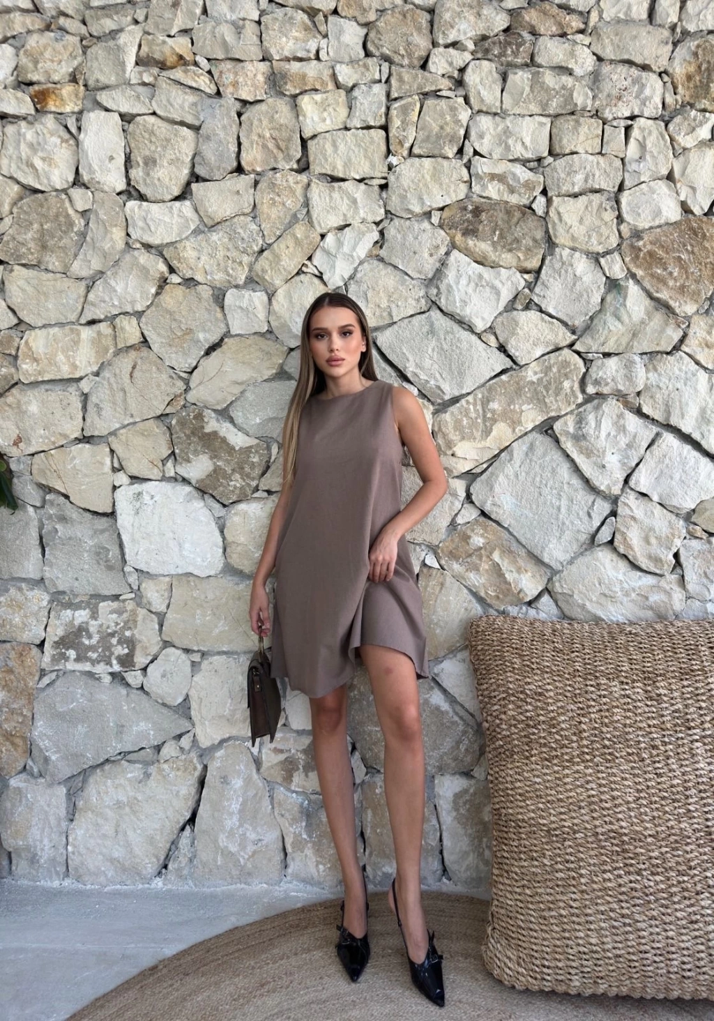 Fermuar detaylı fitilli şardonlu elbise bej a3178
