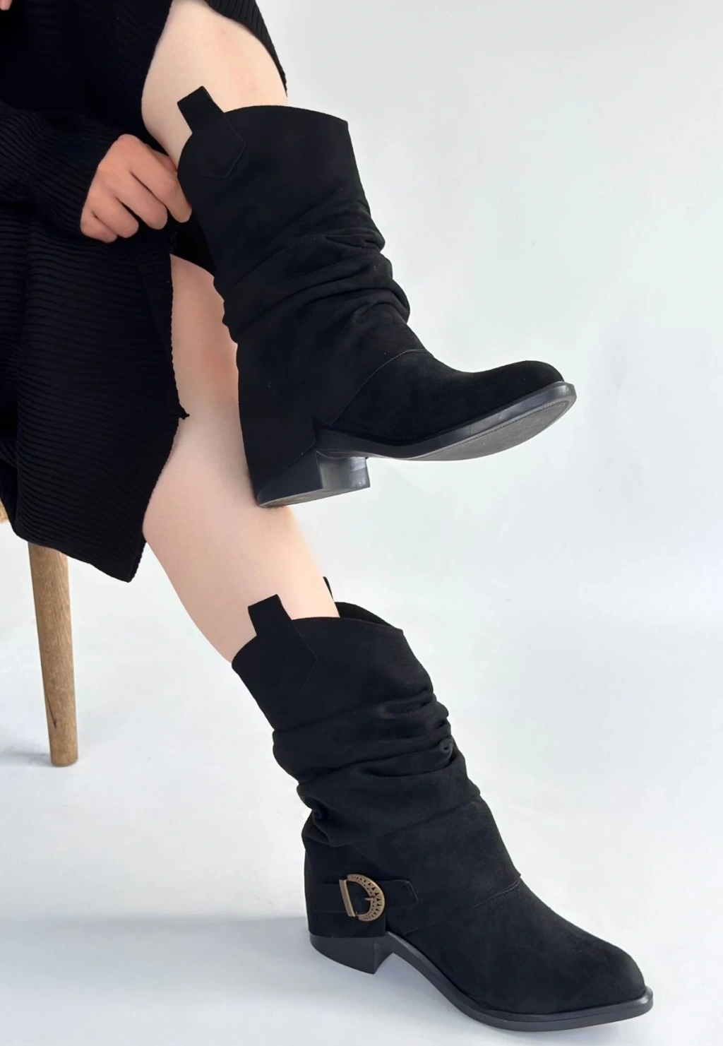 Morena Siyah Desenli Cilt Topuklu Çizme