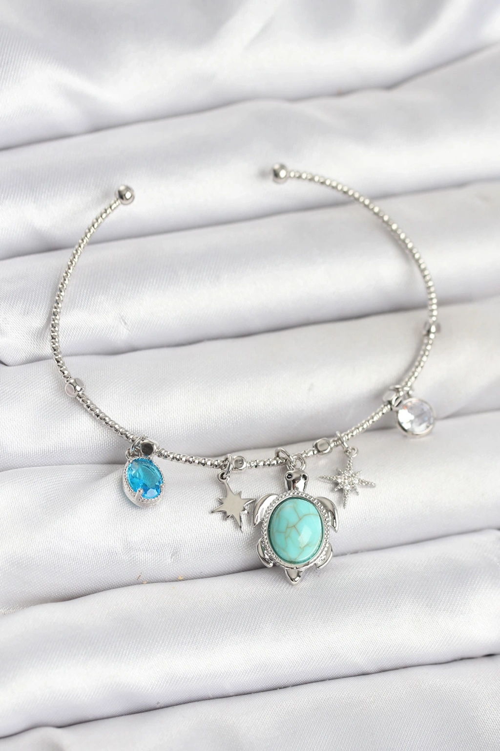 Caretta Caretta Charmlı Gümüş Renk Kadın Bileklik