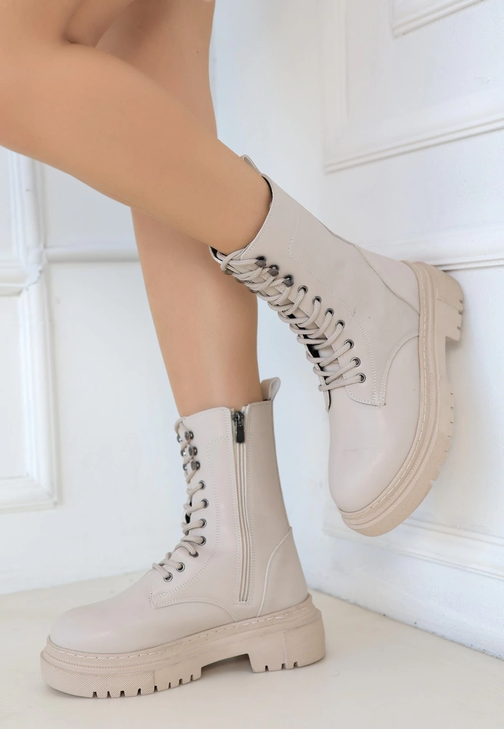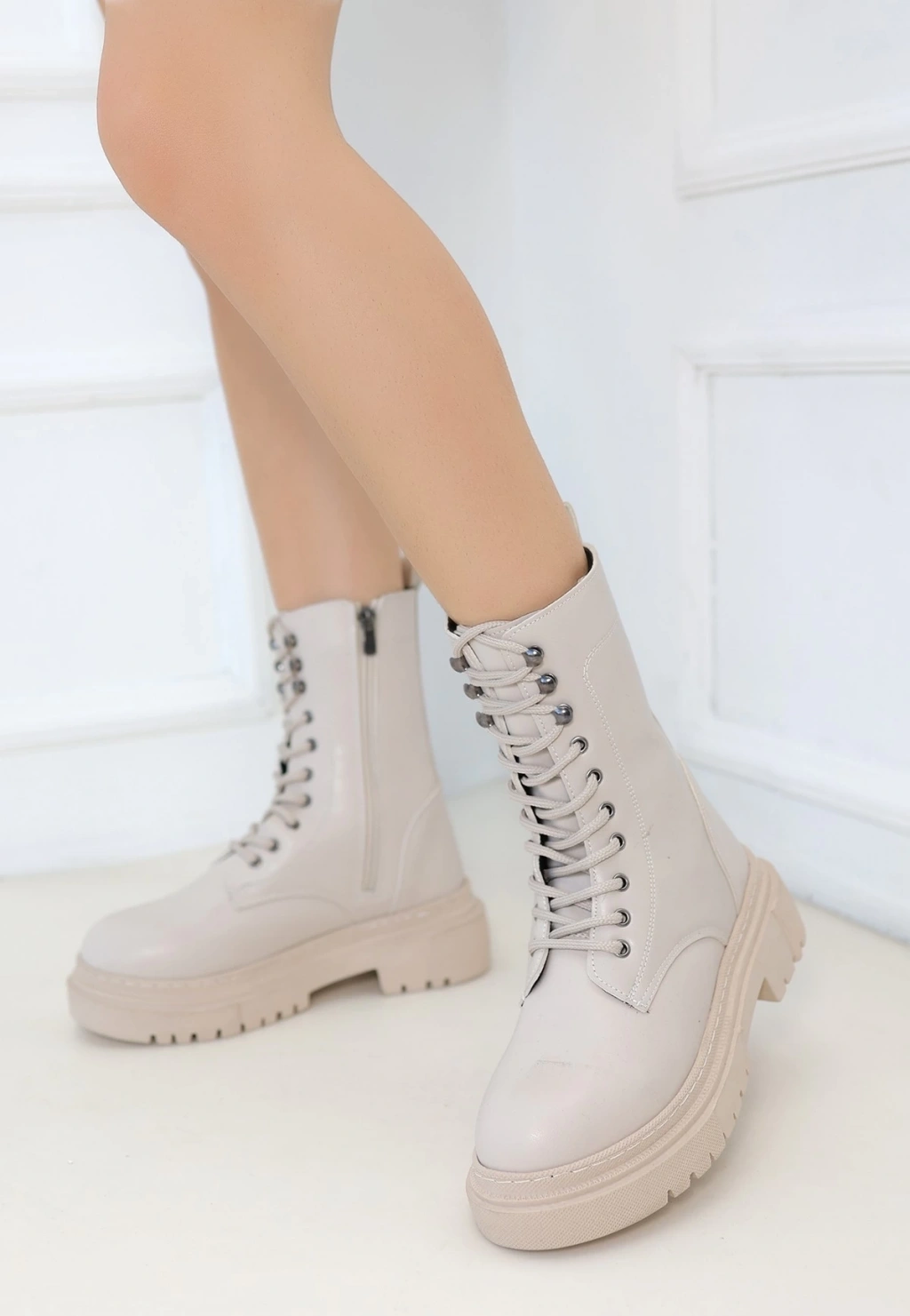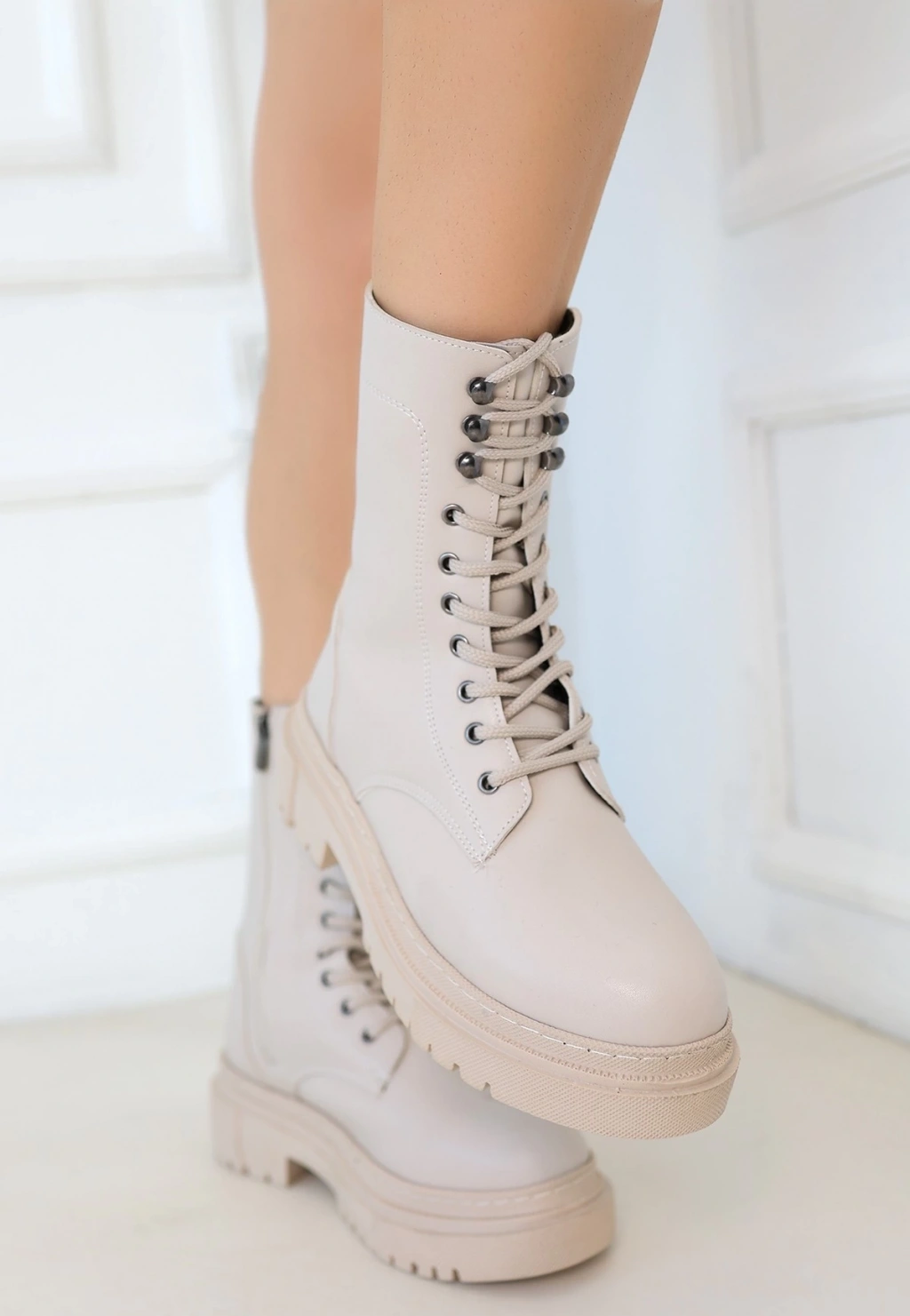 Jones Bej Cilt Bağcıklı Topuklu Bot