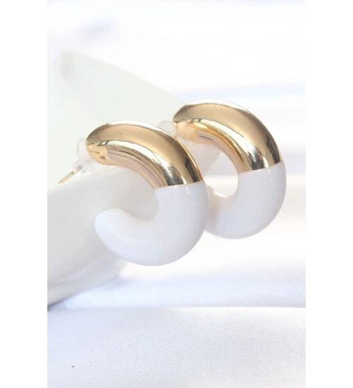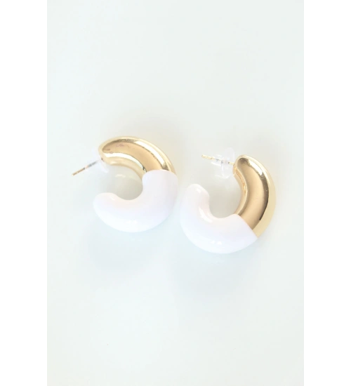 CCB Beyaz Gold Çift Renk Küpe