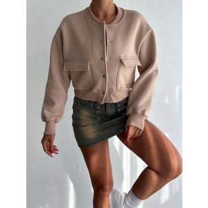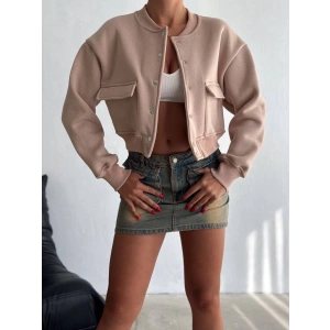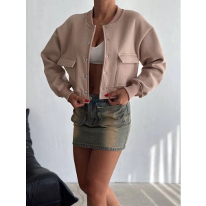 3 iplik şardonlu Önü çıtçıtlı cepli ceket bej f2226
