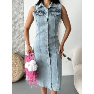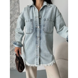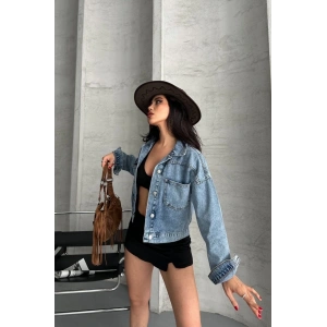 Cepli püsküllü kar yıkama kot ceket mavi d2515