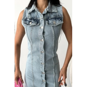 Sıfır kol kar yıkama tunik ceket mavi d2520