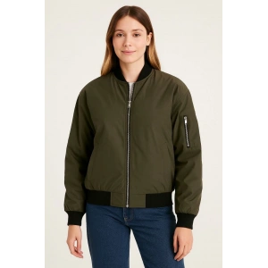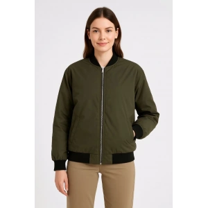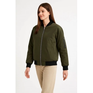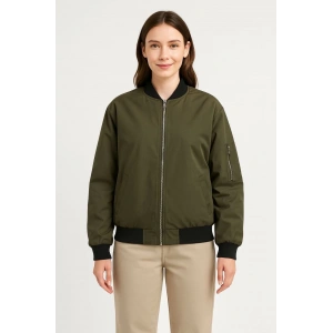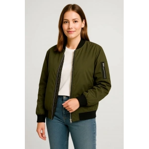 Kadın Bomber Mont Ceket – Fermuarlı, Kapitone İçi Astarlı, Su İtici Kumaş, Regular Fit, Yandan Cepli, Günlük Bahar & Kış Şık Rahat Stil - Haki