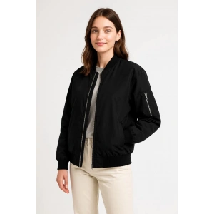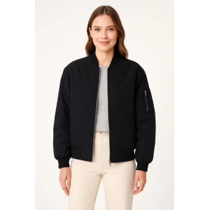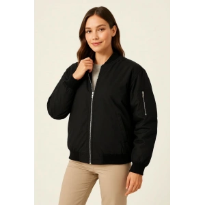 Kadın Bomber Mont Ceket – Fermuarlı, Kapitone İçi Astarlı, Su İtici Kumaş, Regular Fit, Yandan Cepli, Günlük Bahar & Kış Şık Rahat Stil - Siyah