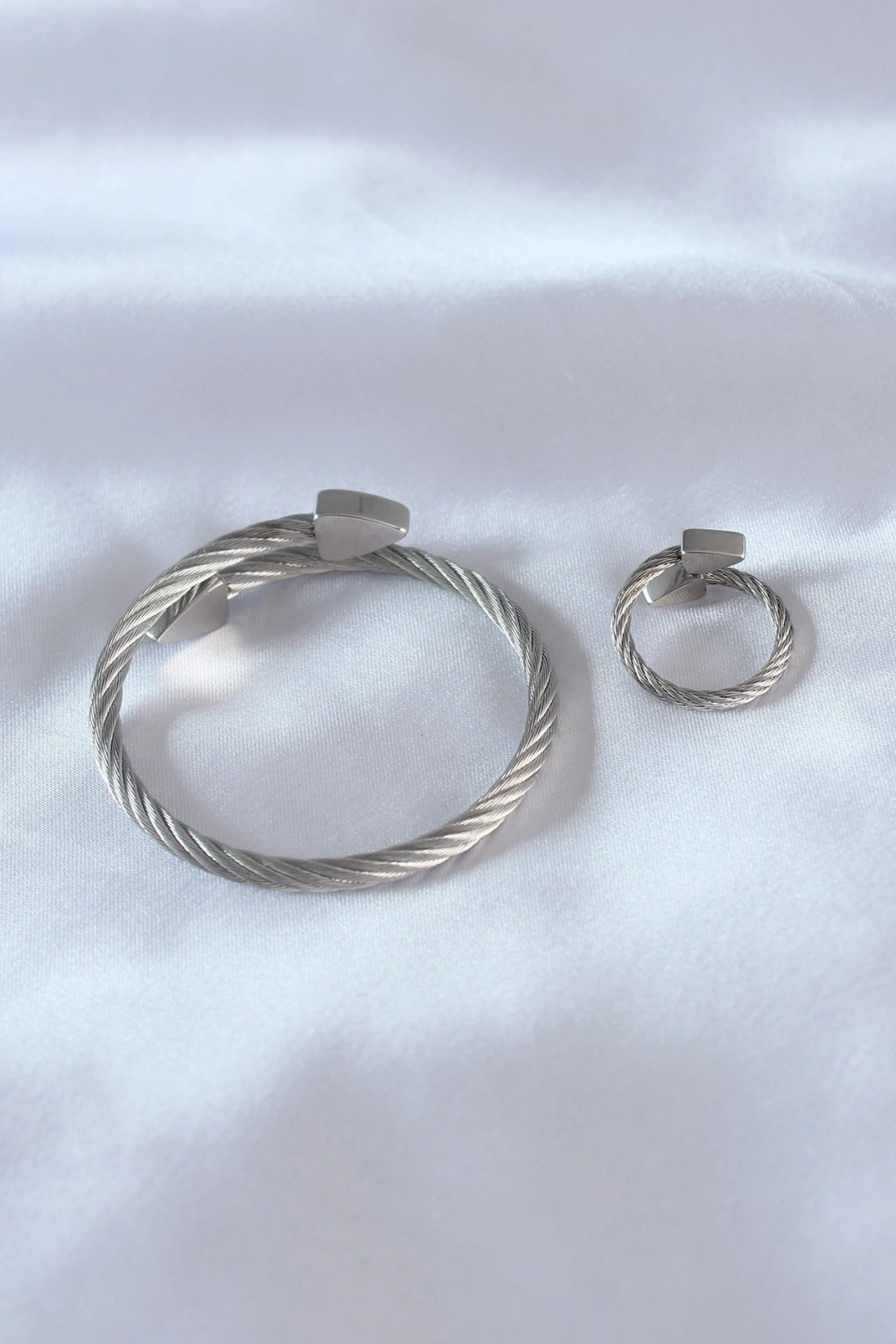 Çelik Gümüş Renk Burgu Model Erkek Bileklik Yüzük Seti