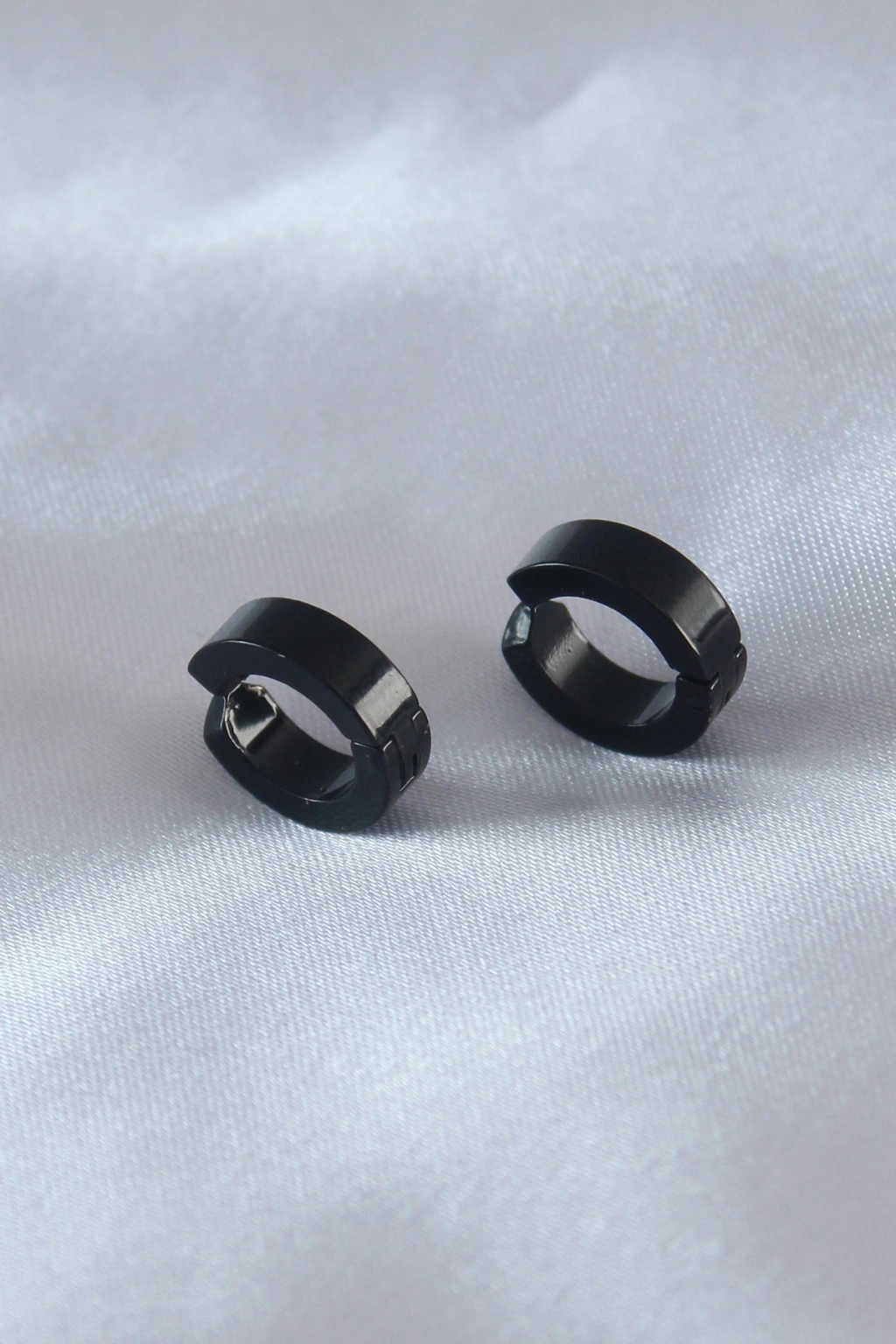 Çelik Siyah Renk Sıkıştırmalı Erkek Küpe