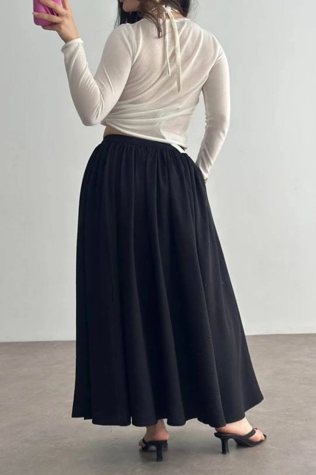Deri garnili kaz ayağı kaşe etek siyah h24604