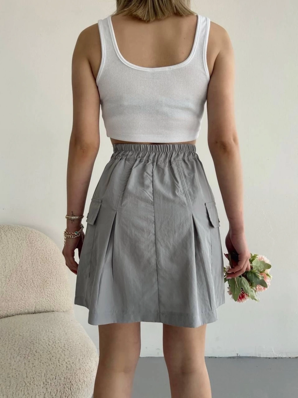 Cep detaylı oval kapaklı deri etek yeşil h240048