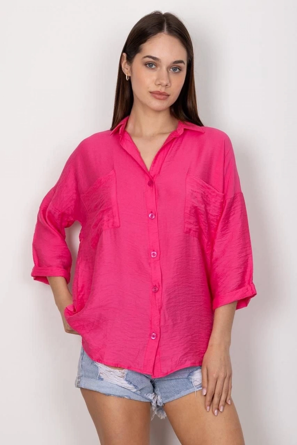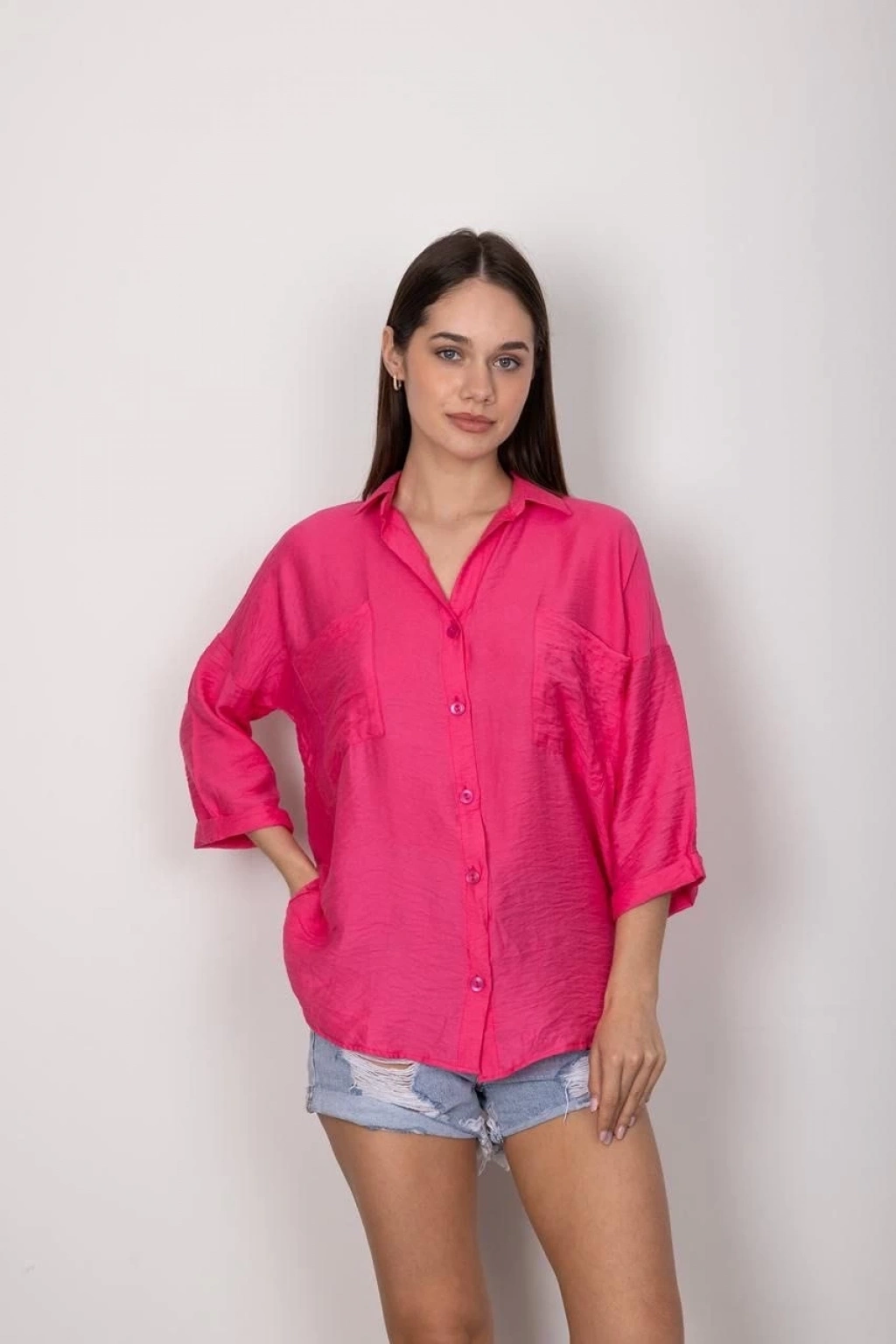 Tek cepli müslin gömlek pembe pt