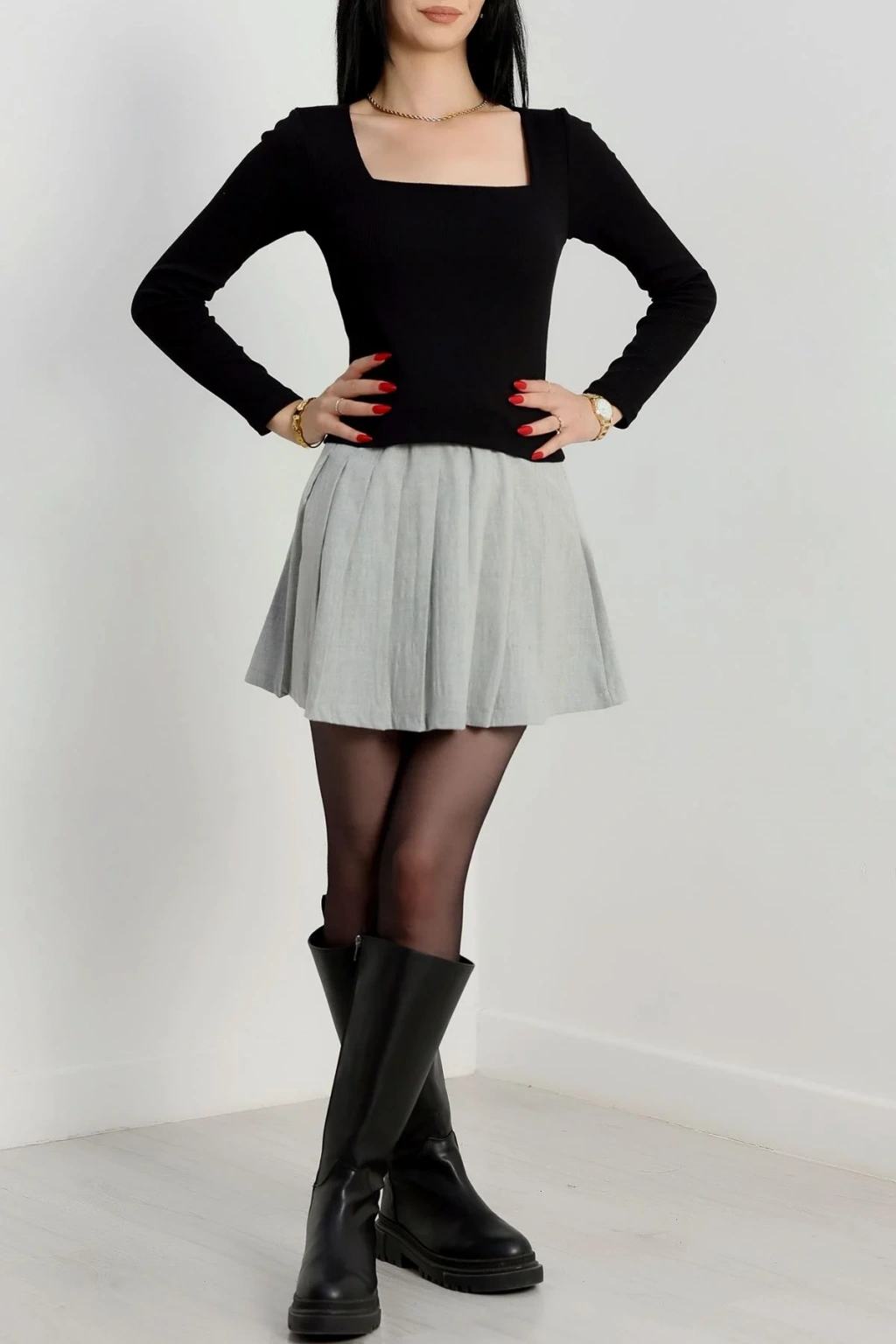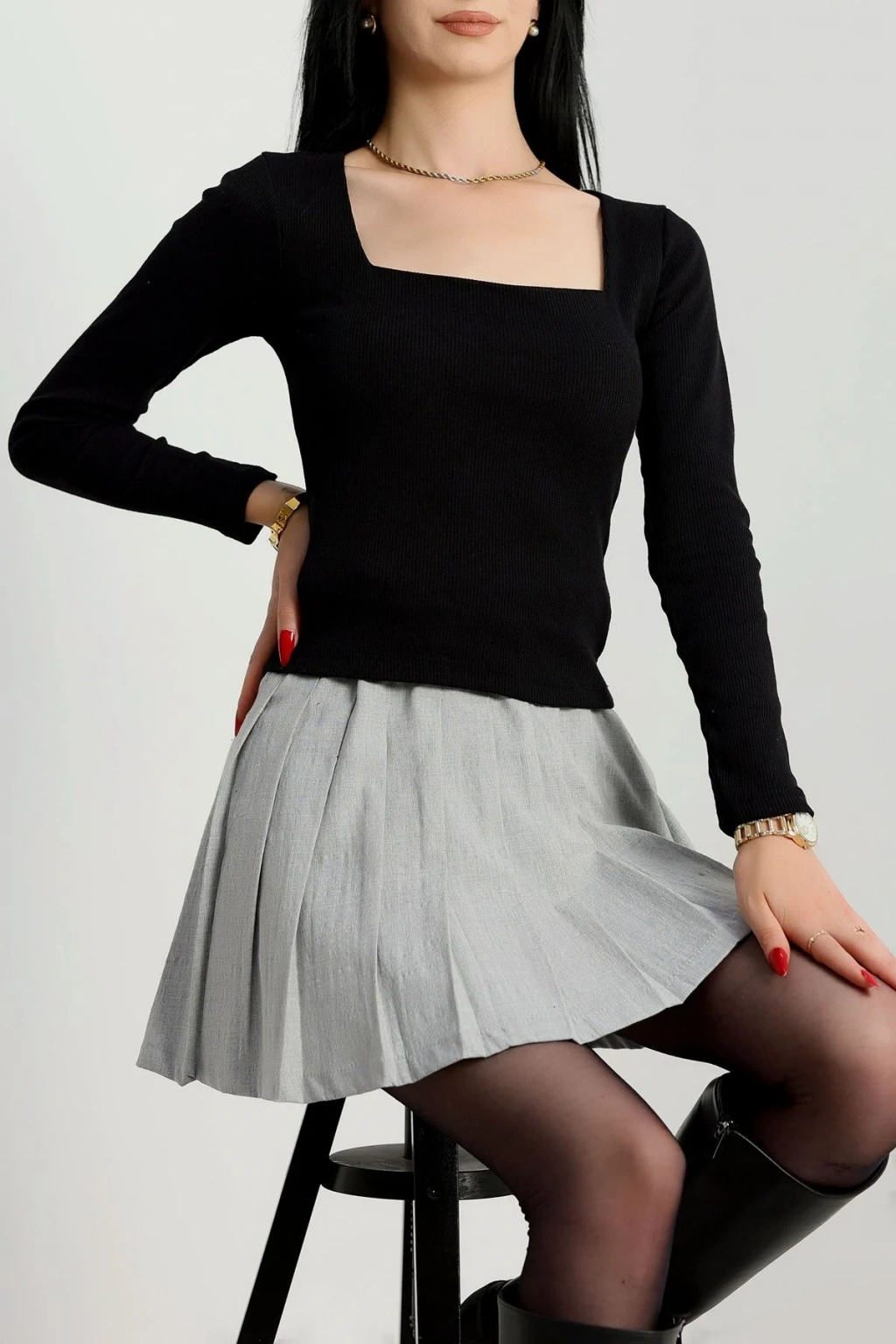 Omzu Açık Fermuarlı Bluz siyah T4330