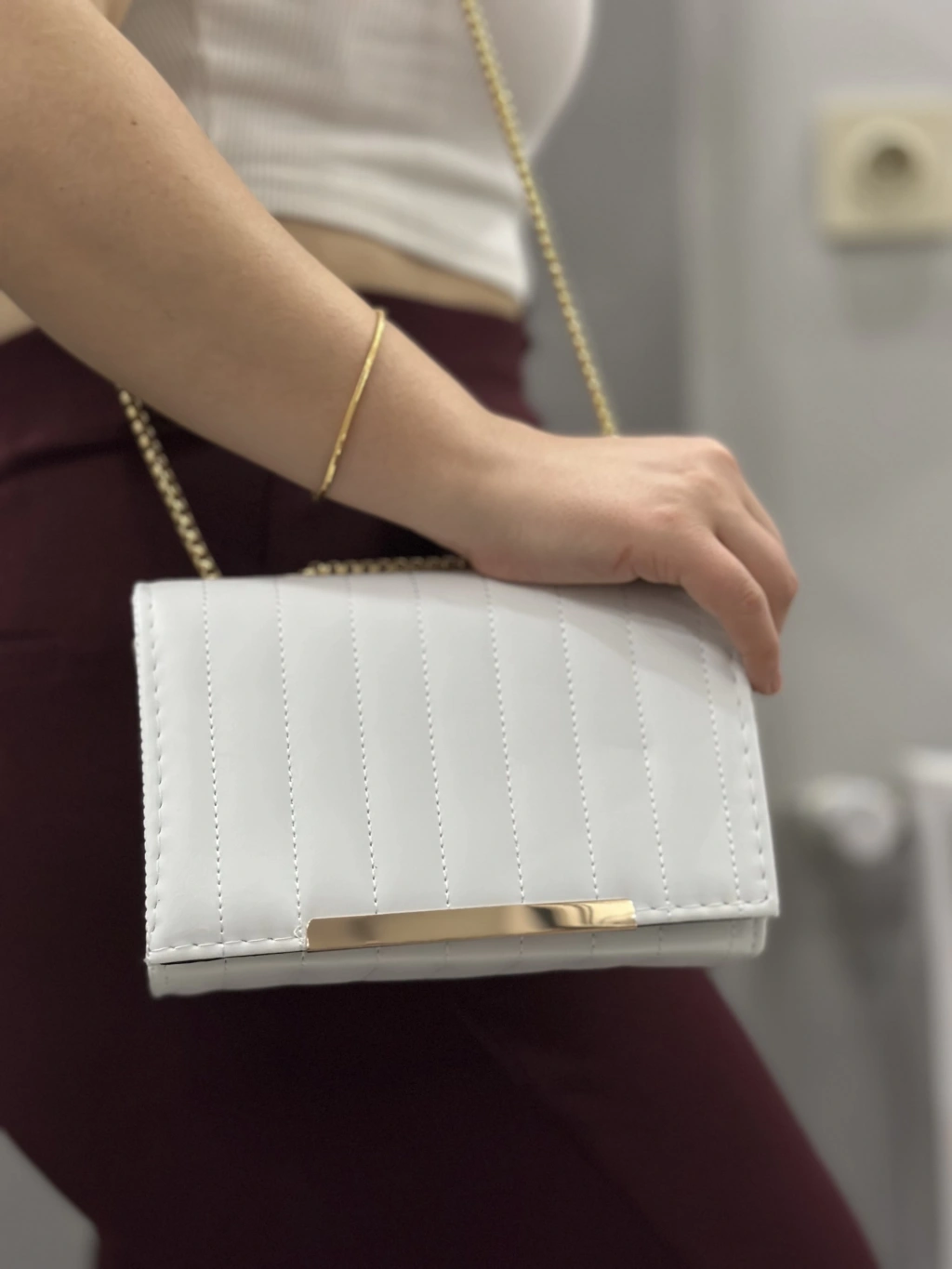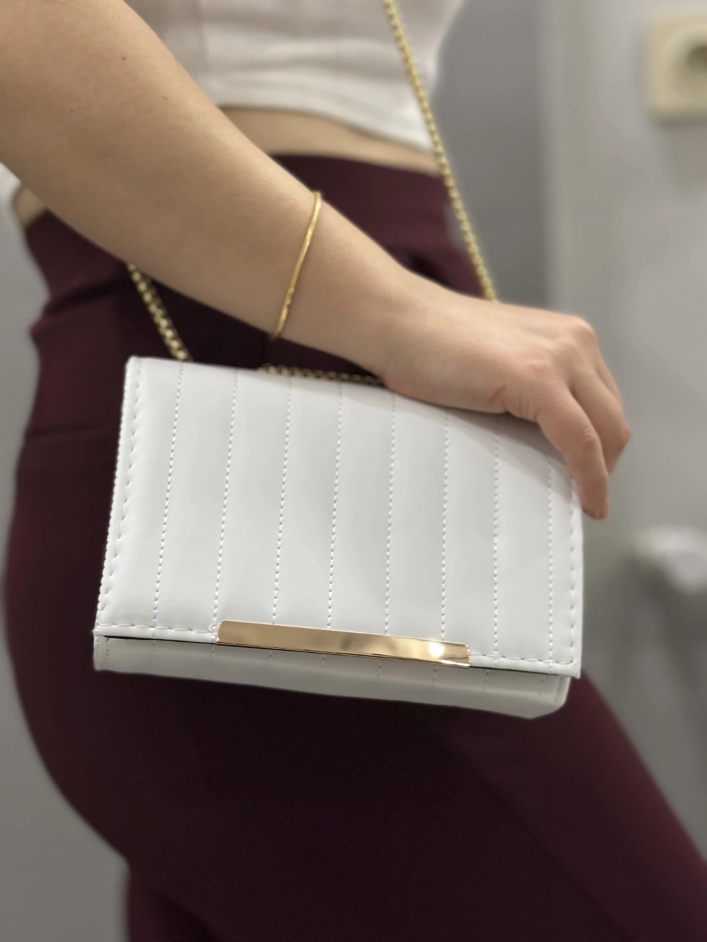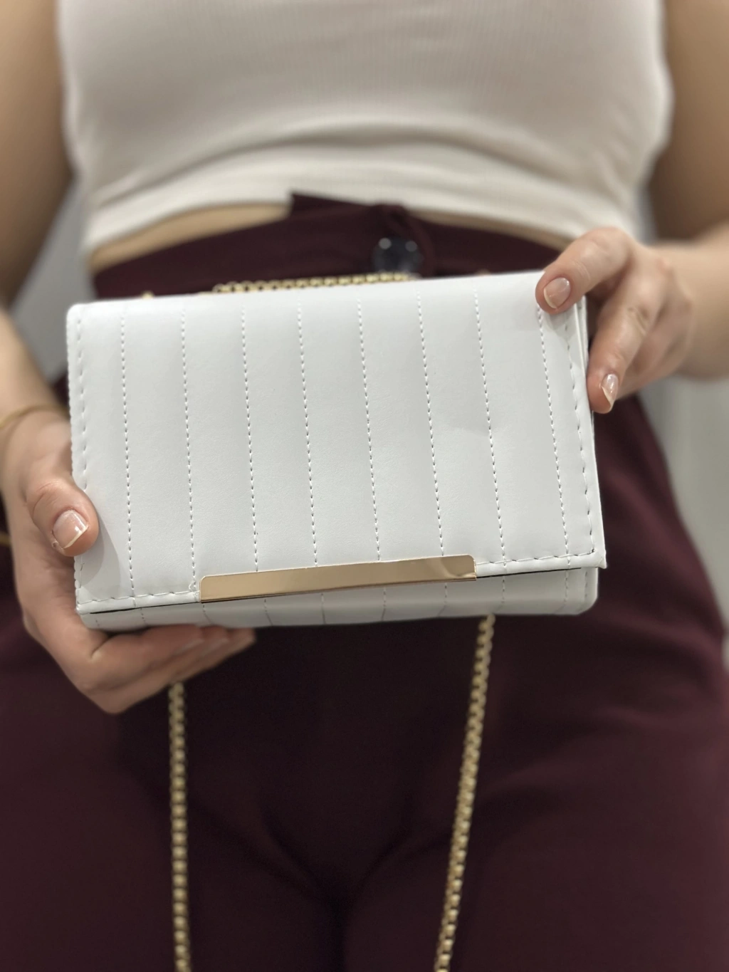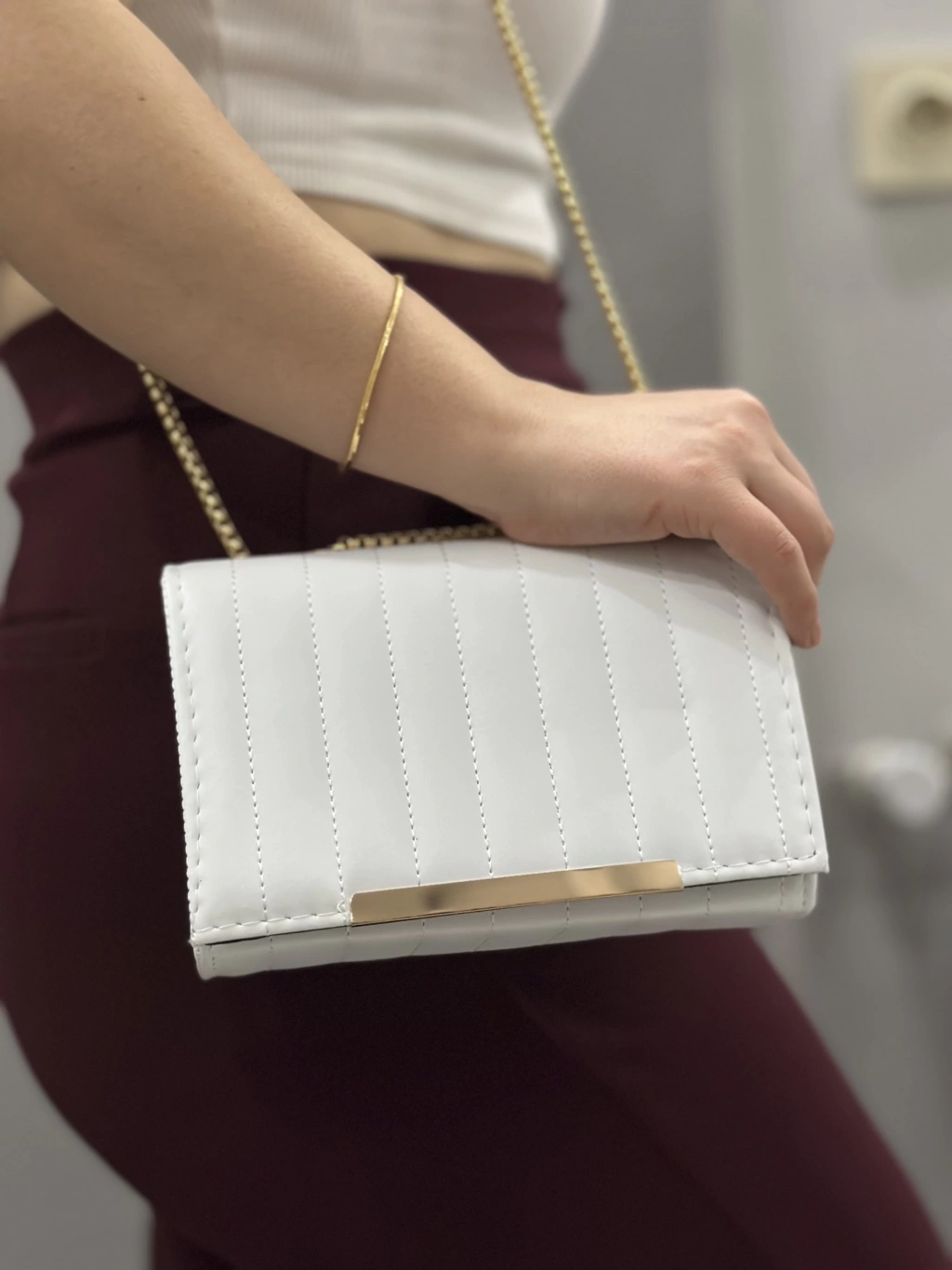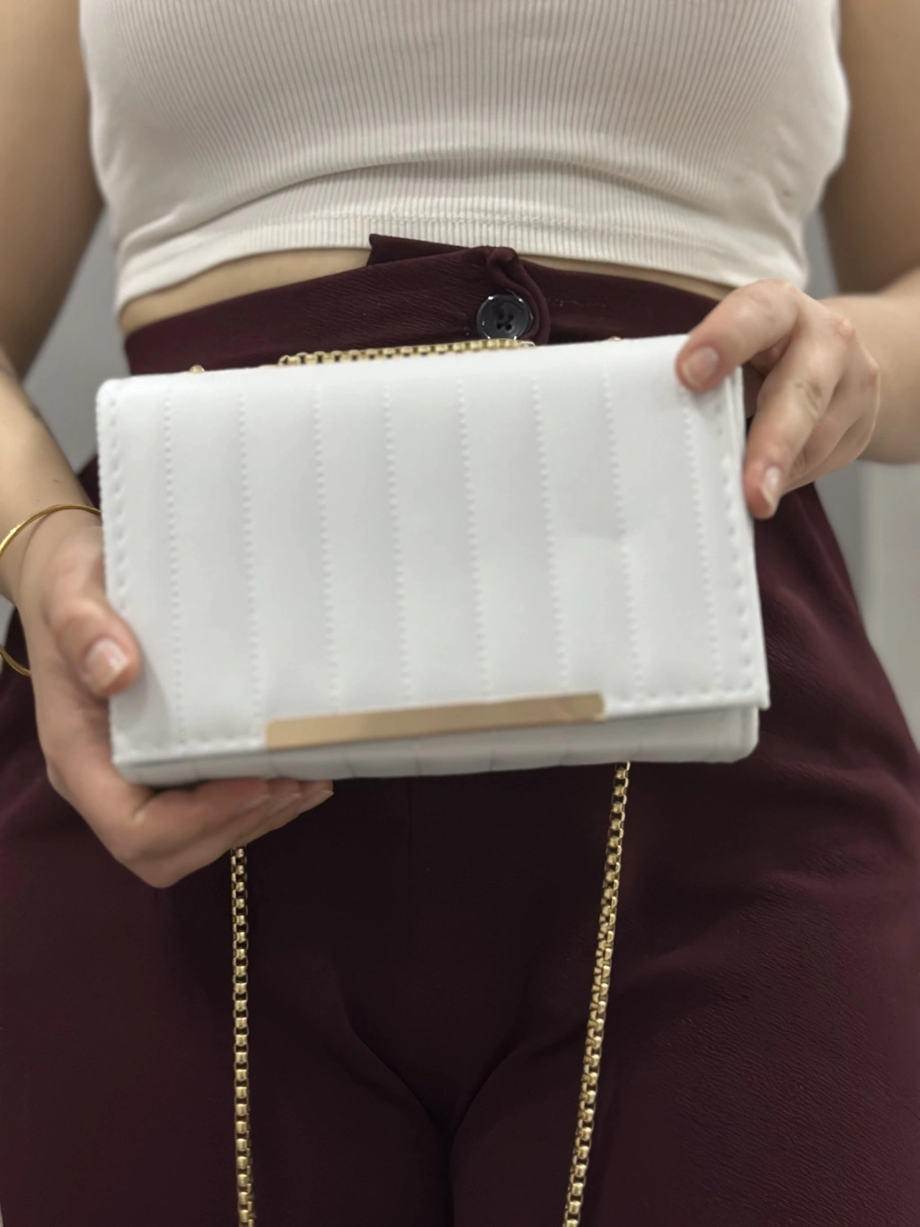Cessi Beyaz Cilt Çanta, günlük hayatta ve özel günlerde kullanabileceğiniz şık ve fonksiyonel bir aksesuardır. Klasik ve zamansız tasarımıyla her an yanınızda şıklığı taşıyabilirsiniz.