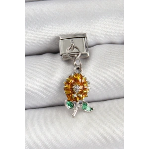 316L Çelik Sallantılı Ayçiçeği Model Gümüş Renk Nomination Charm