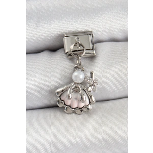 316L Çelik Sallantılı İnci Detaylı İstiridye Model Gümüş Renk Nomination Charm