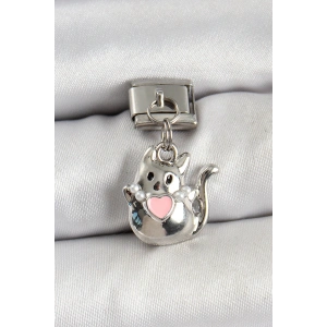 316L Çelik Sallantılı Kalp Detaylı Kedi Model Gümüş Renk Nomination Charm