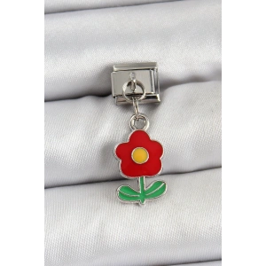 316L Çelik Sallantılı Kırmızı Papatya Model Gümüş Renk Nomination Charm