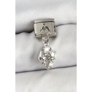 316L Çelik Sallantılı Zirkon Taşlı Kalp Model Gümüş Renk Nomination Charm
