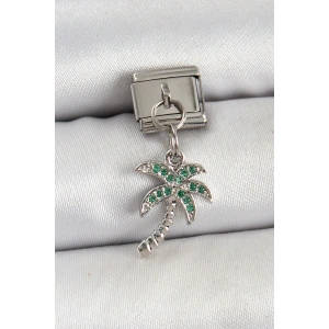 316L Çelik Sallantılı Zirkon Taşlı Palmiye Ağacı Model Gümüş Renk Nomination Charm