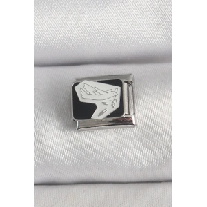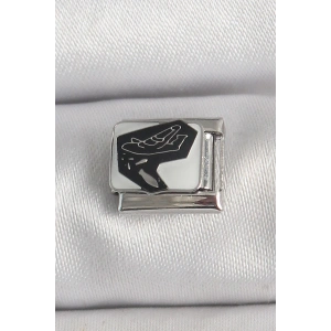 316L Çelik Gümüş Renk Siyah Beyaz Kuş İşlemeli Nomination Charm
