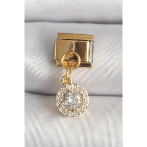 316L Çelik Gold Renk Sallantı Daire Zirkon Taşlı Nomination Charm
