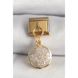 316L Çelik Gold Renk Sallantı Zirkon Taşlı Yonca Model Nomination Charm