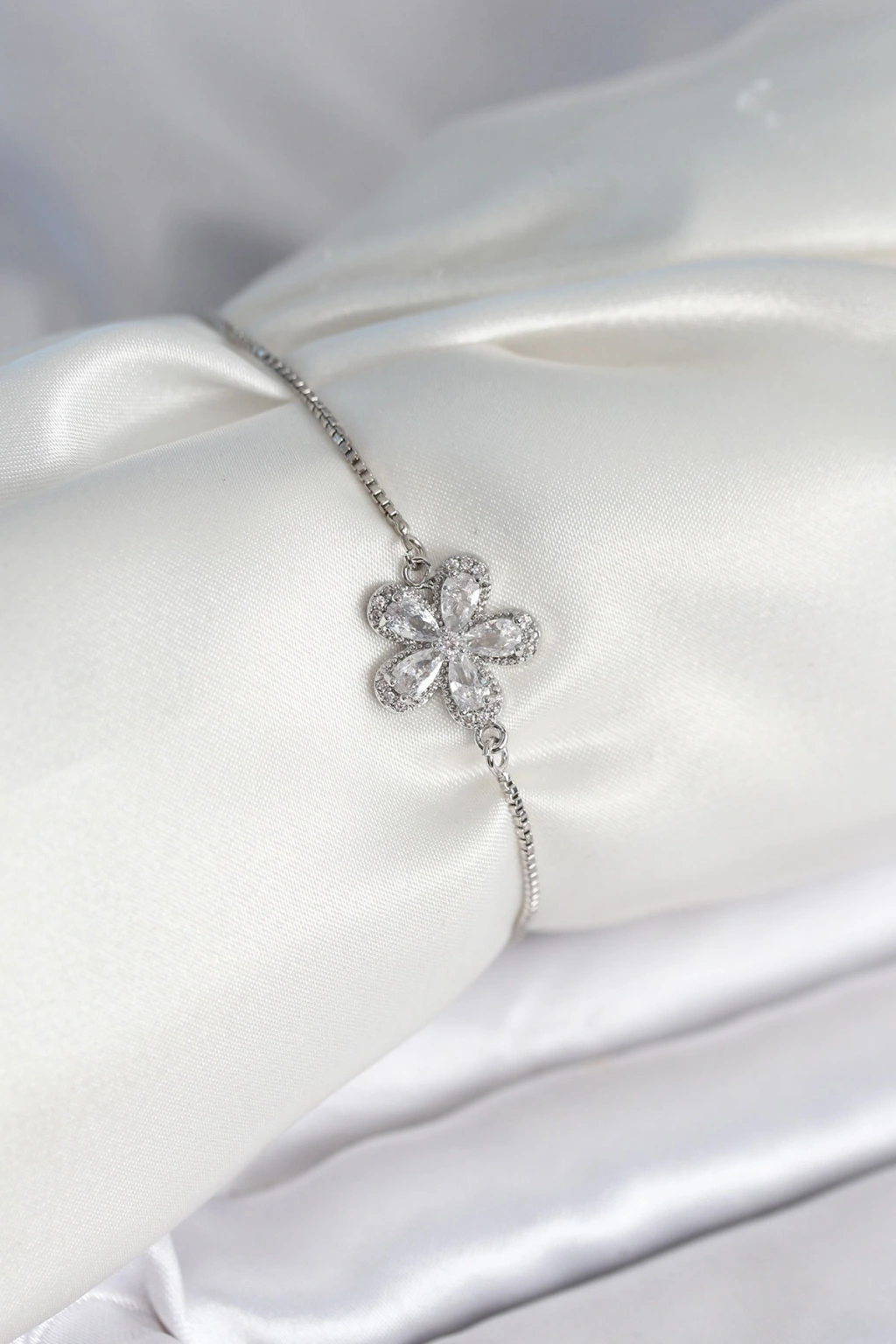 Çiçek Model Asansörlü Gümüş Renk Kadın Bileklik