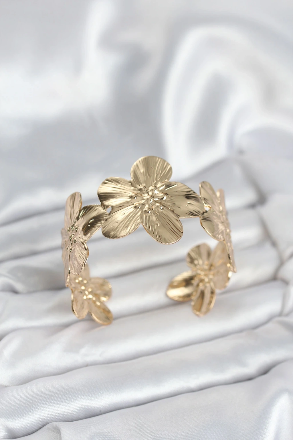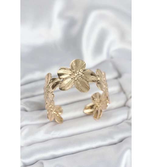 Çiçek Model Pirinç Levha Kadın Bileklik