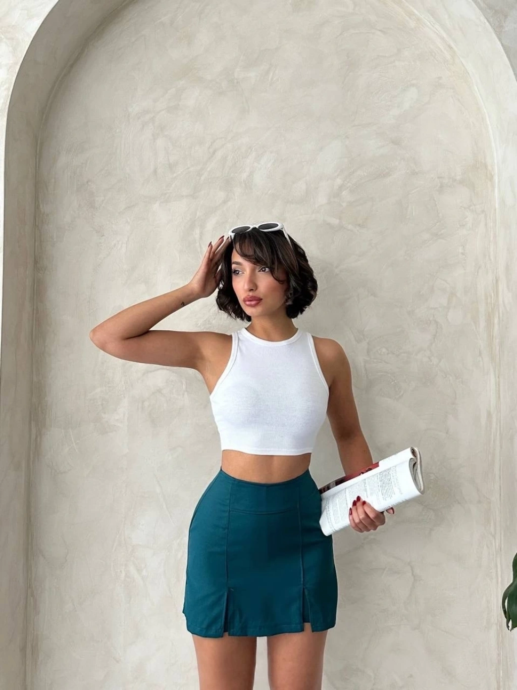 Kapaklı kaşe şort etek siyah beyaz kazayağı h261218