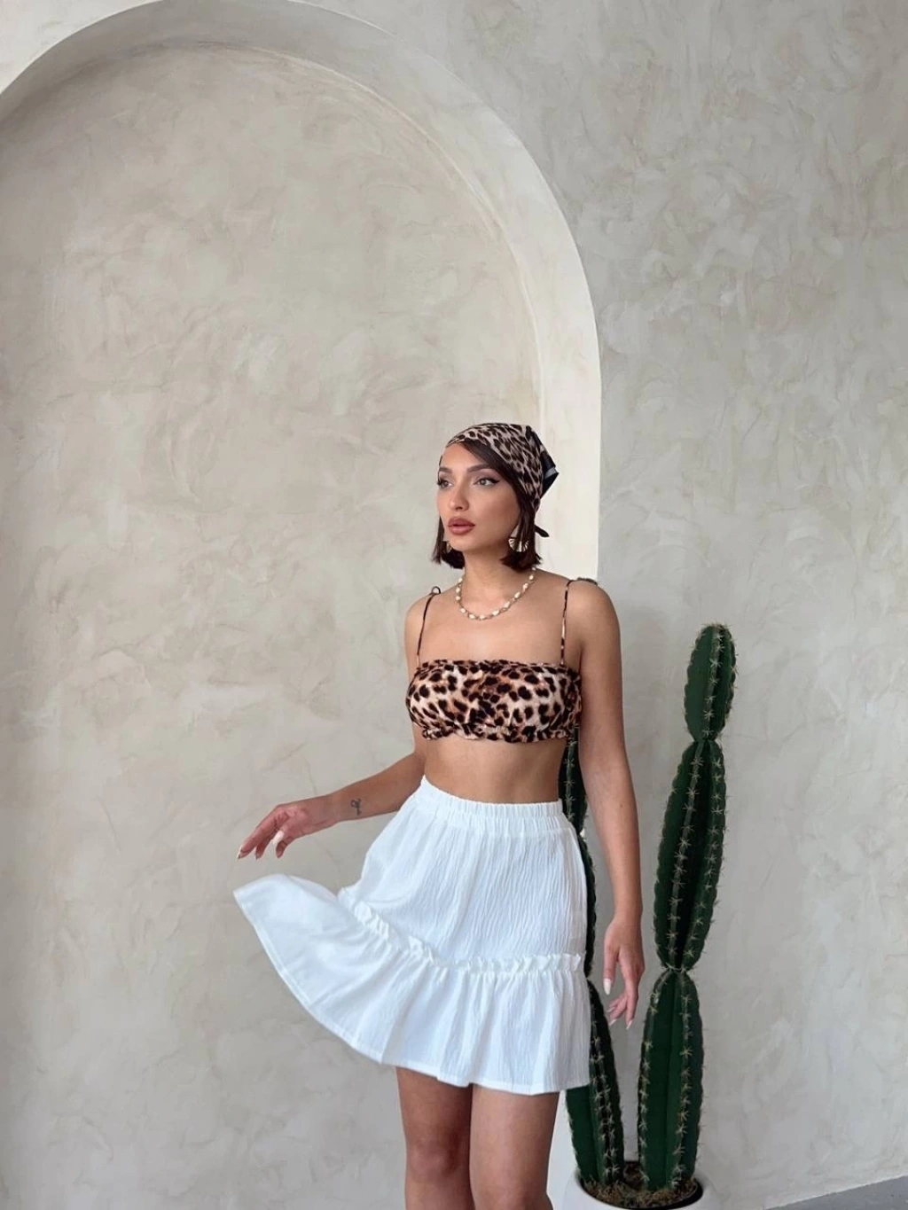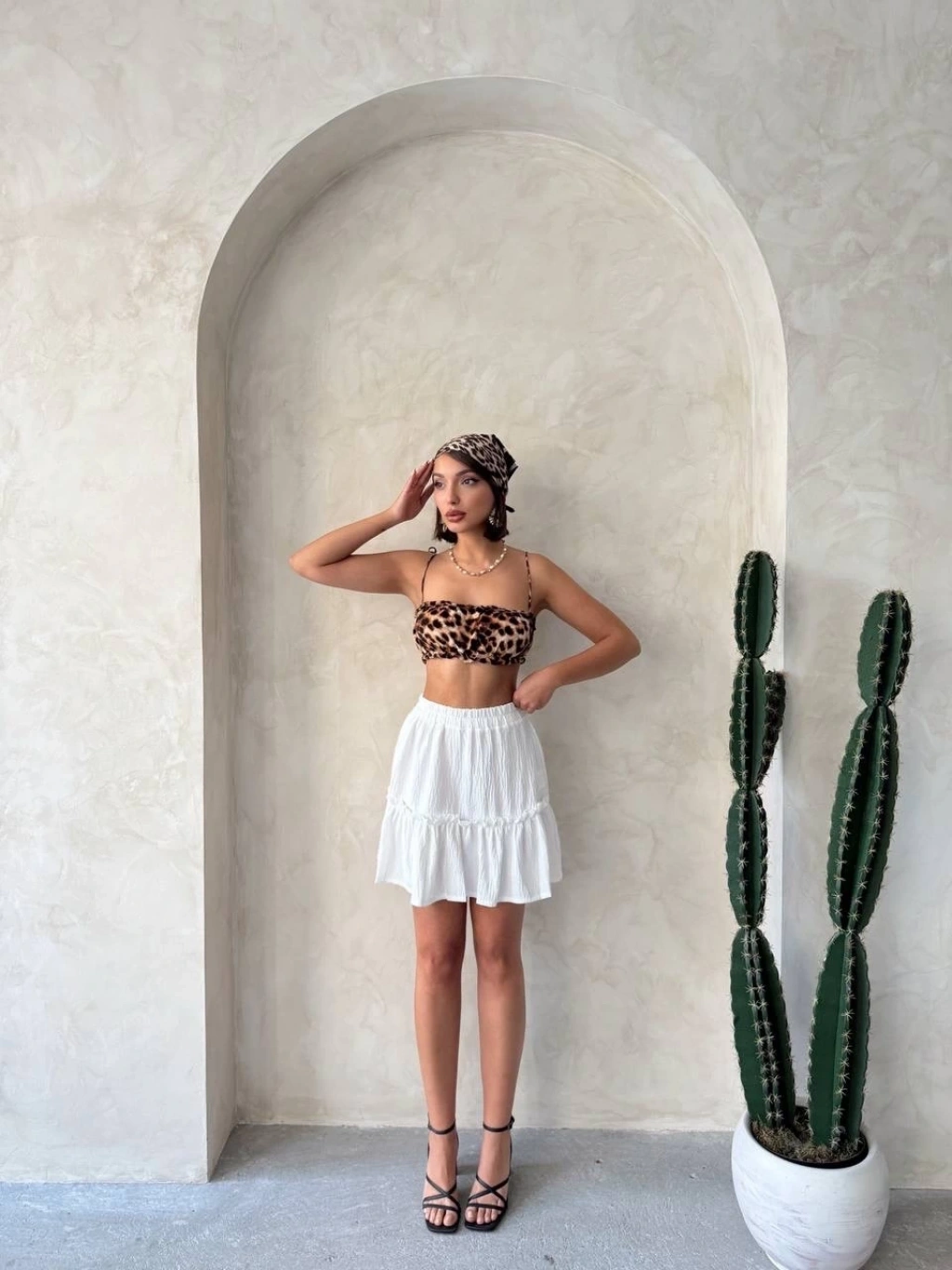 Cep detaylı oval kapaklı deri etek kahve h240048
