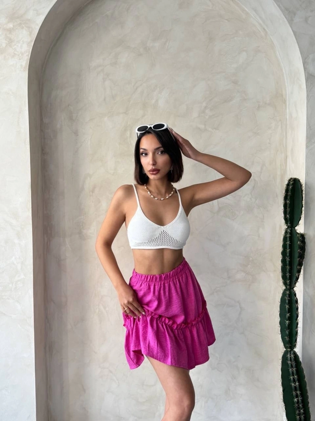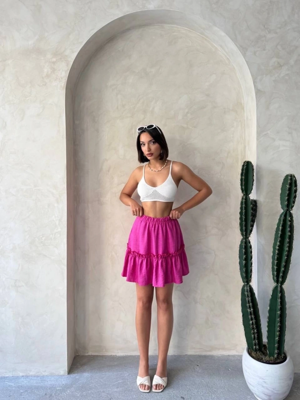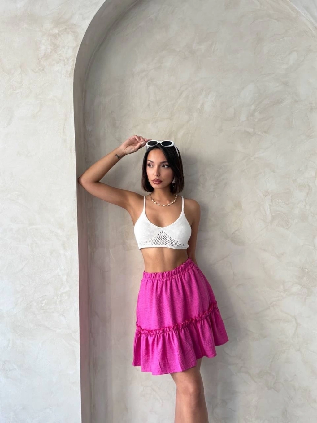 Cep detaylı oval kapaklı deri etek fuşya h240048